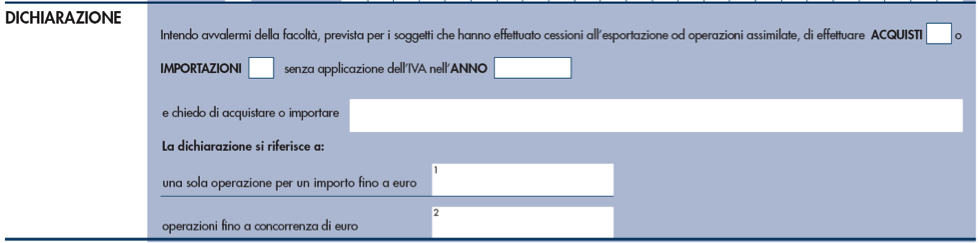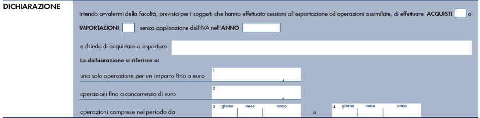 Per quegli esportatori abituali, quindi, che alla fine dello scorso anno o agli inizi del 2017 hanno emesso lettere di intento da inviare ai propri fornitori, al fine di poter ricevere fin da subito fatture senza applicazione dell’Iva ai sensi dell’articolo 8, comma 1, lettera c), D.P.R. 633/1972, la trasmissione telematica dei dati in esse contenuti dovranno essere ancora trasmessi con il modello approvato con il Provvedimento direttoriale 12 dicembre 2014, che di seguito di riporta.
